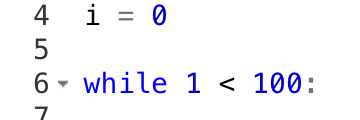 3/si quieres que repita el código vas a poner i = 0 while 1 < 100: